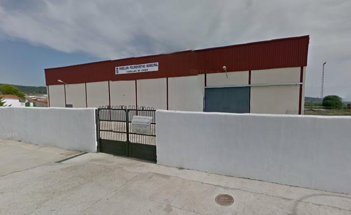 Pabellón Polideportivo Municipal de la localidad de Casillas de Coria con pistas para practicar fútbol sala, baloncesto, voleybol, etc.